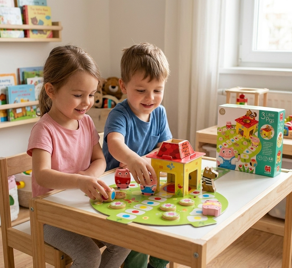 - L'intérêt du jeu "Les 3 Petits Cochons" (version Goula) repose sur des principes de psychopédagogie bien précis, notamment pour les enfants dès 2 ans. Ce jeu n'est pas seulement une activité ludique, c'est un outil de transition entre le jeu libre et le jeu de société structuré.