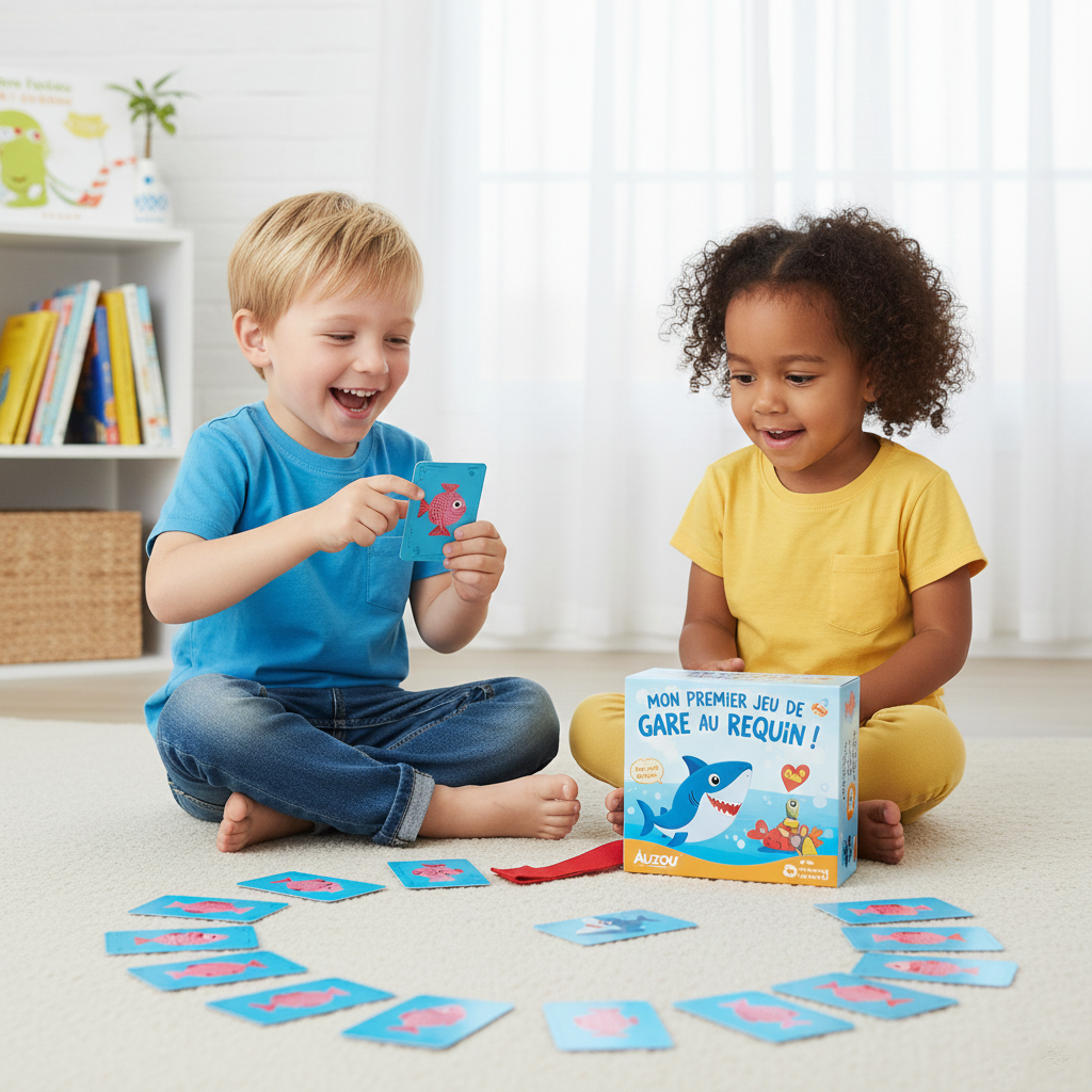 Le jeu "Gare au Requin !" est un jeu d'adresse et de chance captivant qui met les nerfs des joueurs à rude épreuve ! Le but est de récupérer le plus de poissons possible à l'aide d'une canne à pêche avant que le requin ne se referme brusquement. Il s'agit d'un jeu de manipulation simple et rapide, idéal pour créer une ambiance amusante et légèrement stressante.