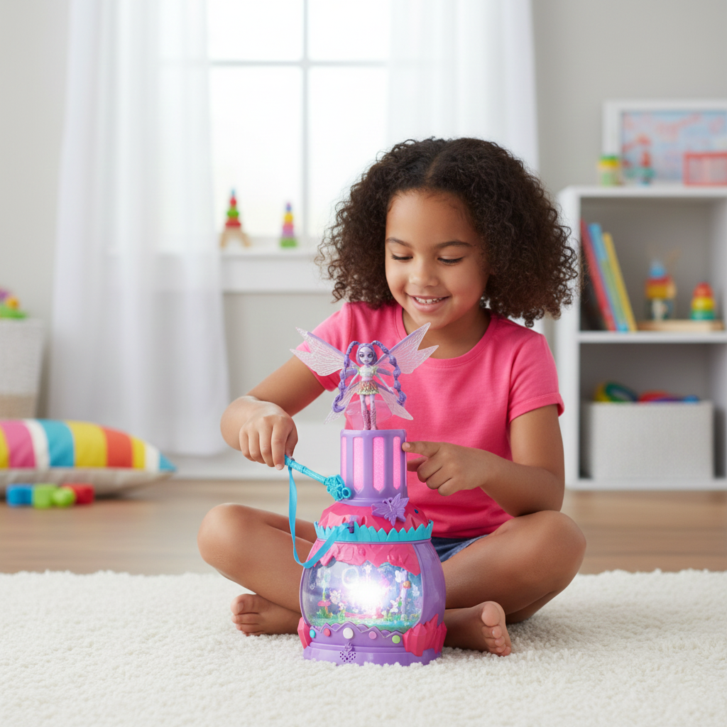 Après une période de jeu numérique, la “magie” permet de faire sortir Wren en format poupée réelle (environ 13 cm) — avec ailes scintillantes et tenue féerique — pour prolonger le jeu dans le monde réel.