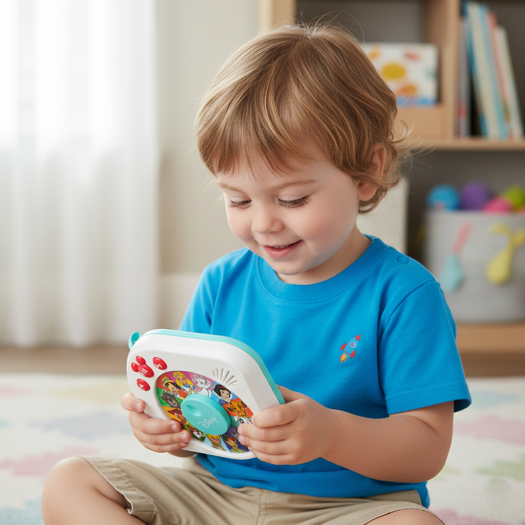 Le jouet stimule l’imagination, l’écoute, la compréhension narrative et l’autonomie de l’enfant. Il fonctionne à piles et peut s’emporter facilement.