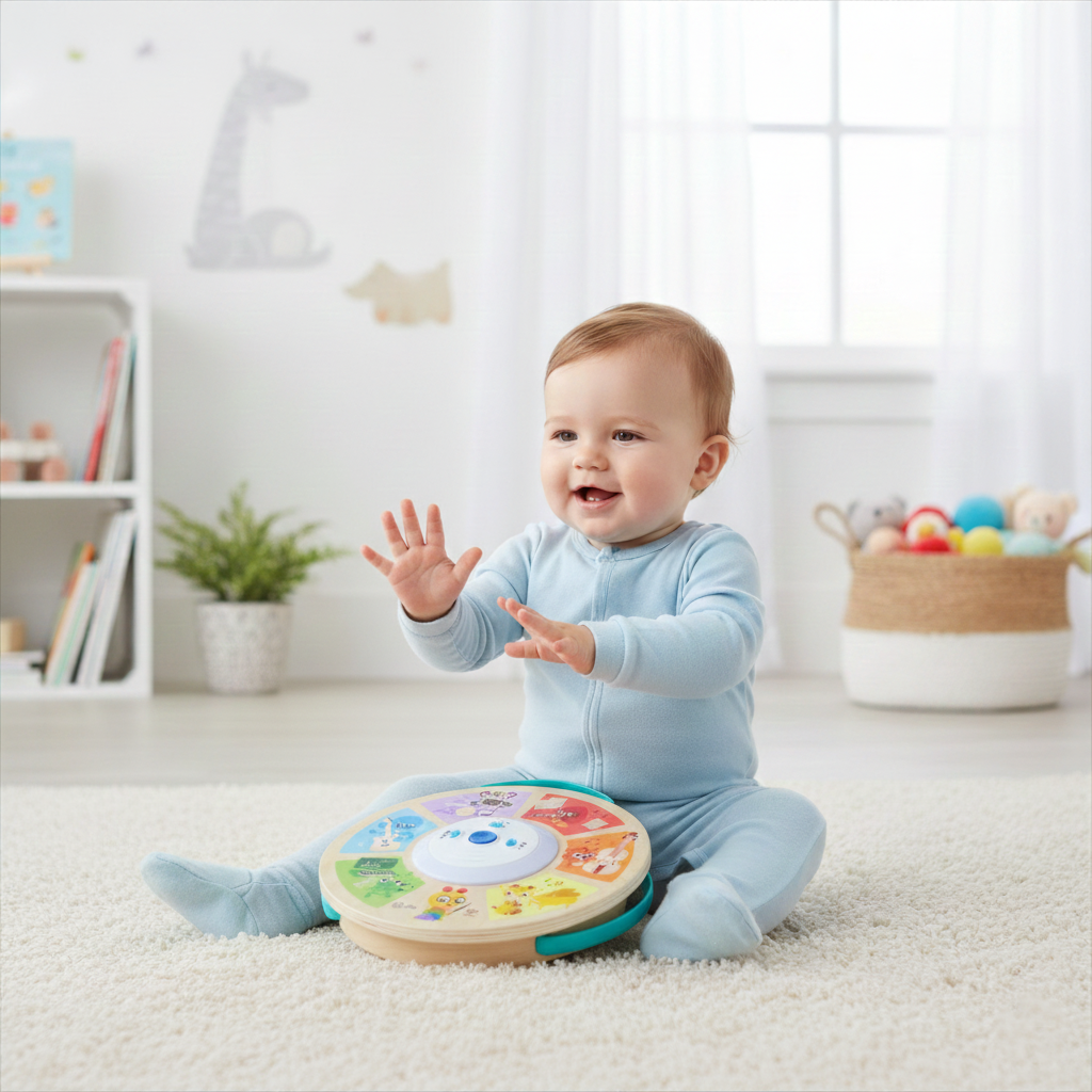 C’est un jouet musical tactile mêlant bois et électronique, conçu pour l’éveil musical des tout-petits.